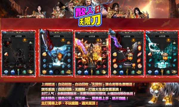 1、无限刀攻速系统,突破传统攻速上限,通过装备叠加和技能buff可实现极致攻击频率,刀光剑影特效满屏,体验割草般爽快战斗。