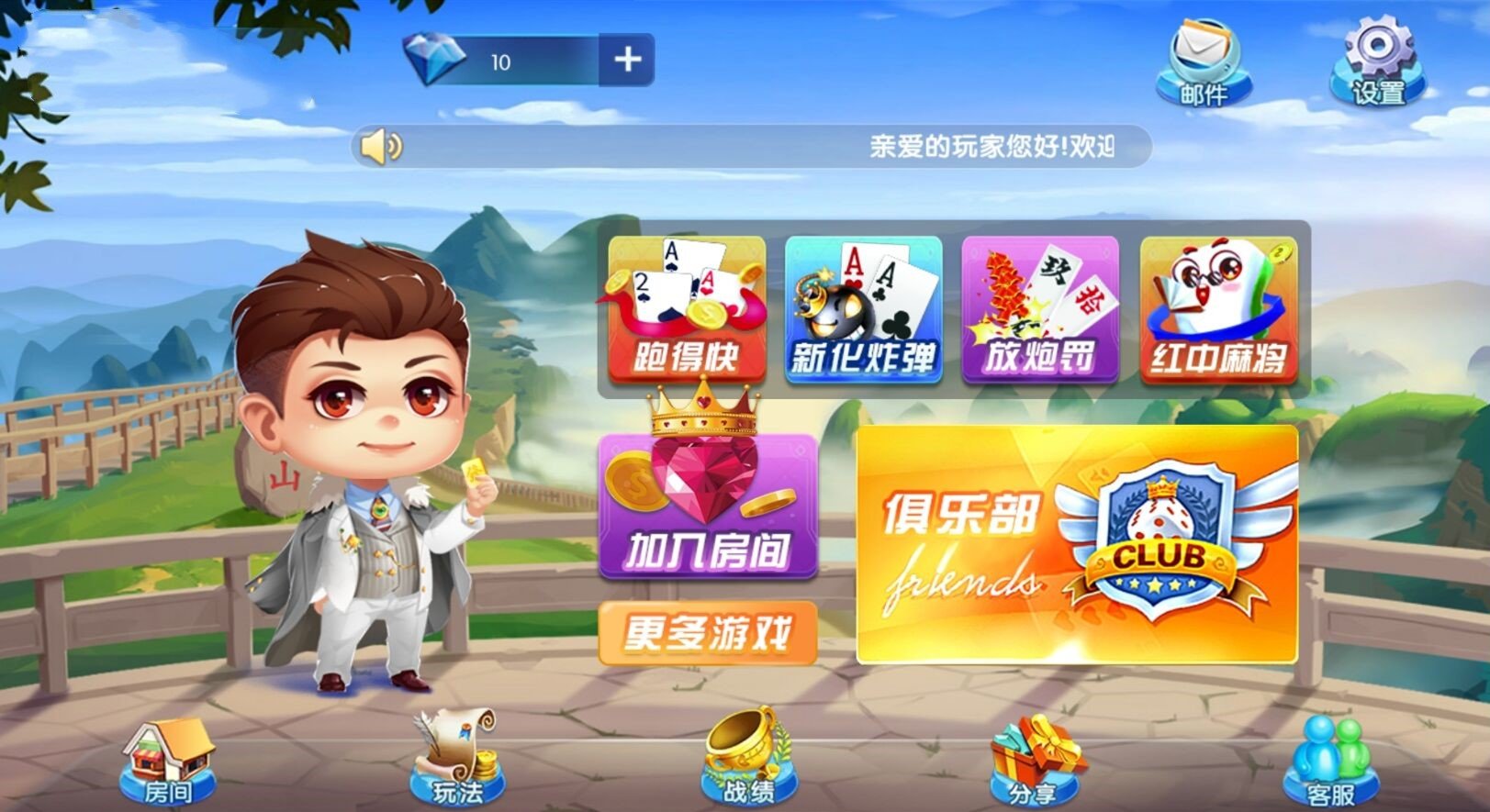4、支持记录回放一键分享等功能,短信等多重验证充值,享受完整的游戏乐趣,具有提示出牌和主持功能。